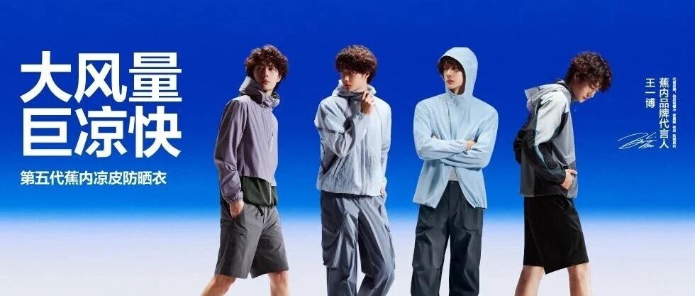 蕉内凉皮第三代防晒系列,搭载AircoolUV™凉感技术,UPF100+原纱可阻隔99%紫外线,多次水洗防晒力不变。面料轻至47g,透气速干不闷热。推出成人及亲子小凉皮系列,适合通勤、户外等夏日场景。4月上市,王一博代言。